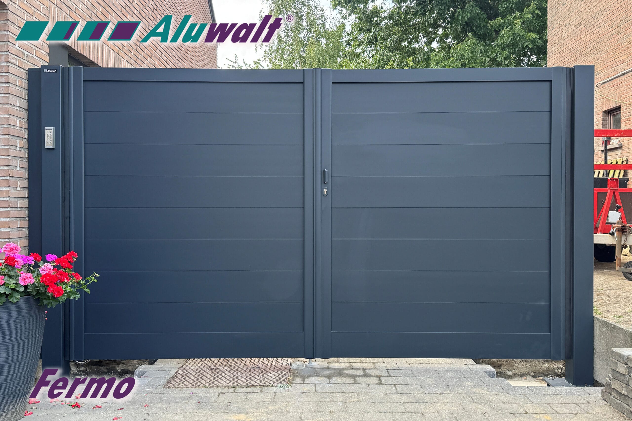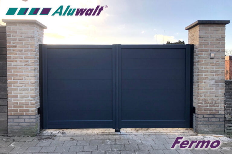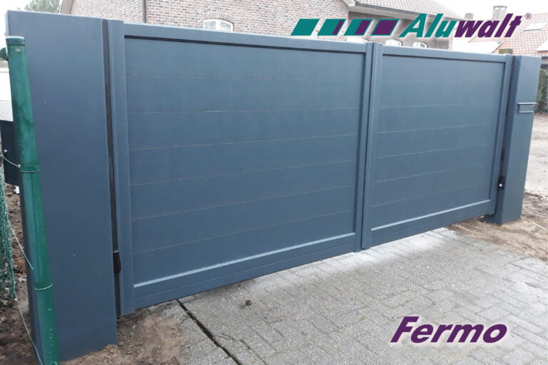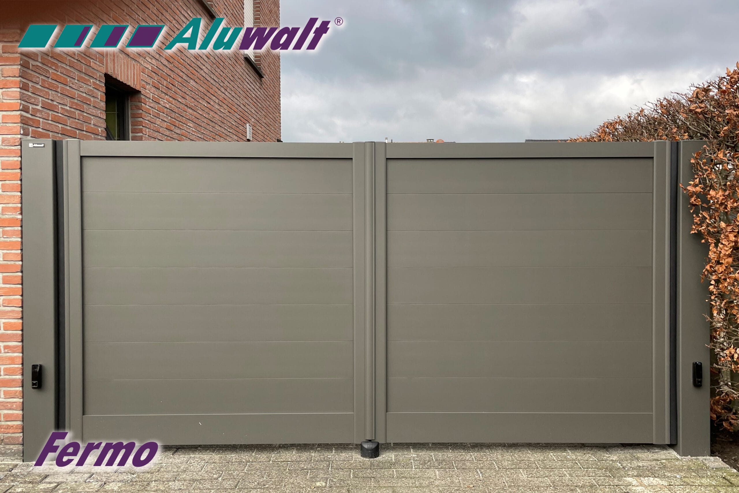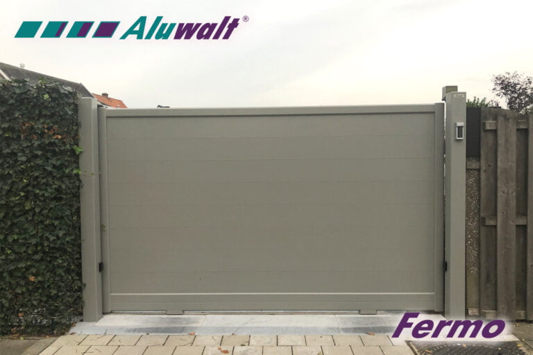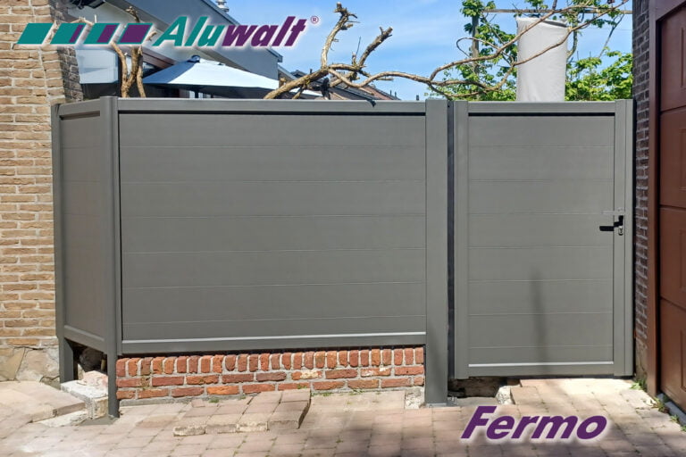 Dit poort/hek is samengesteld uit horizontaal of verticaal geplaatste aluminium lamellen van 20 cm hoog.