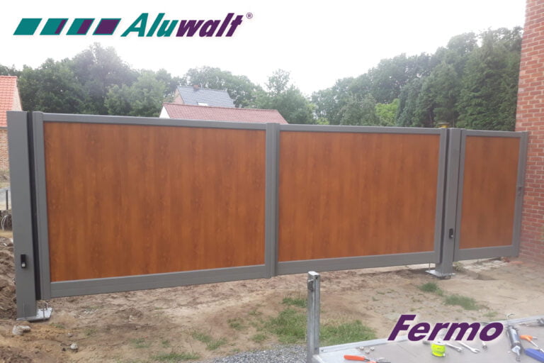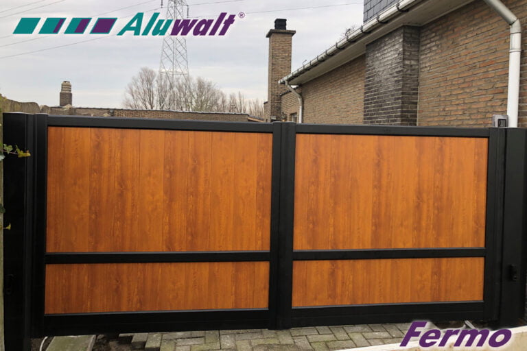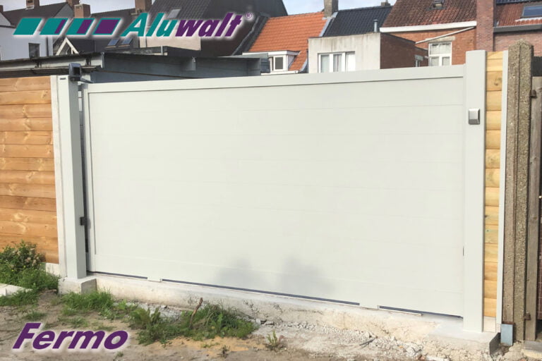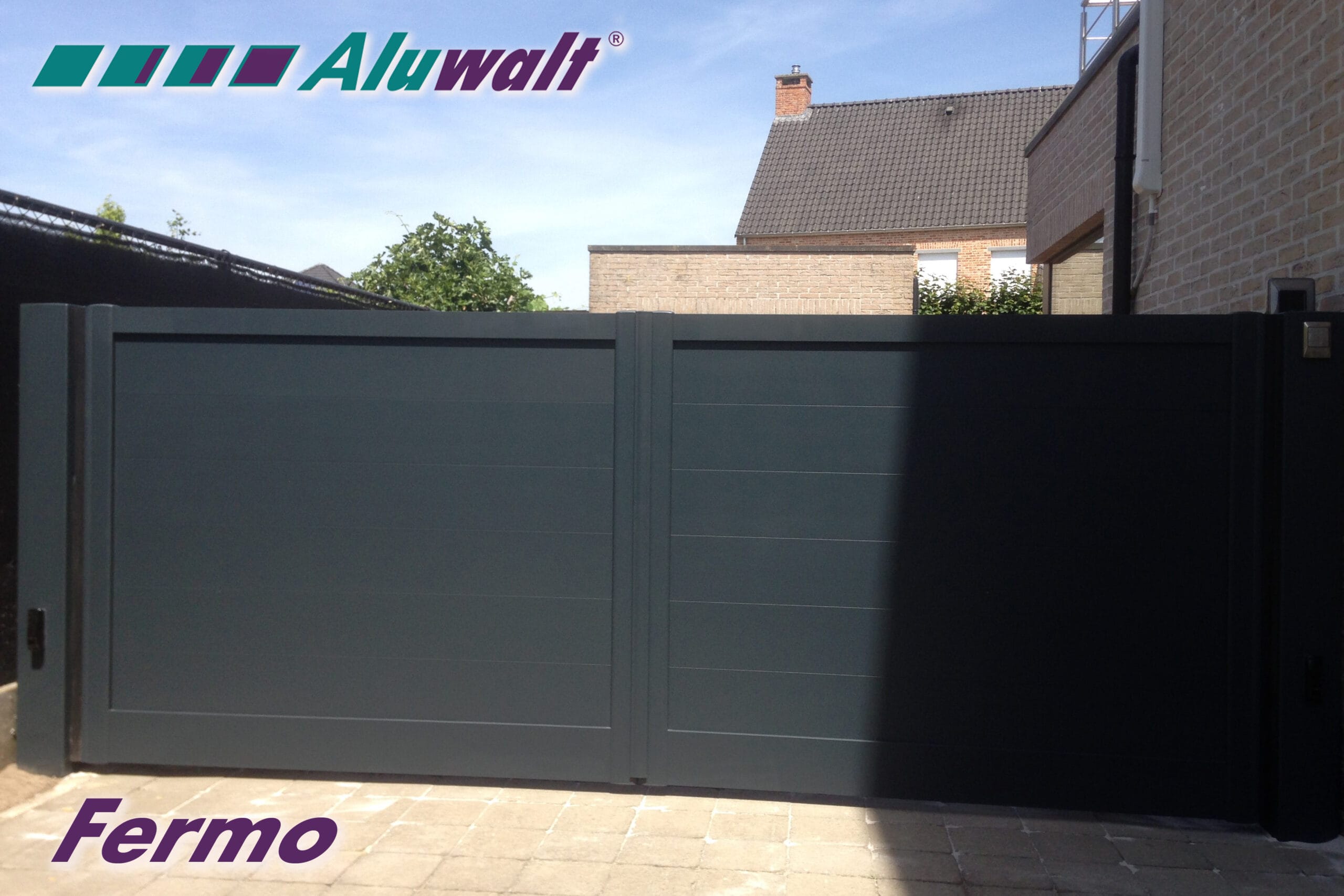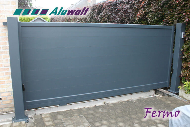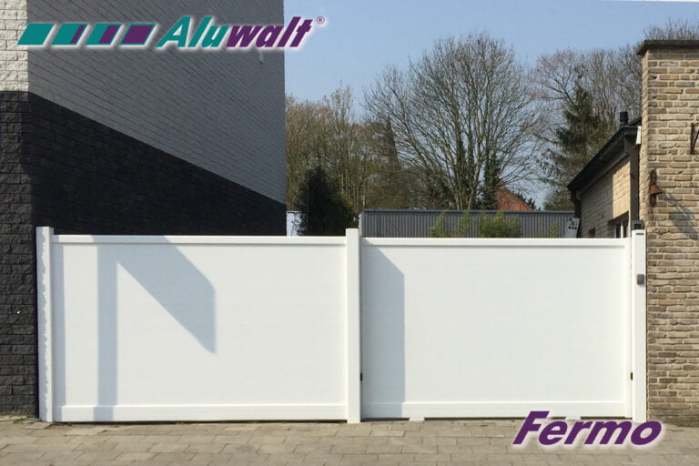 Dit poort/hek is samengesteld uit horizontaal of verticaal geplaatste aluminium lamellen van 20 cm hoog.